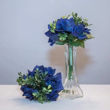 Blue hydrangeas, indigo roses